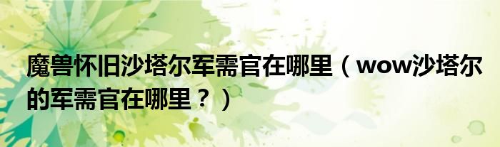 大家好,小安來為大家解答以上問題。魔獸懷舊沙塔爾軍需官在哪里,wow沙塔爾的軍需官在哪里?很多人還不知道,現在讓我們一起來看看吧!