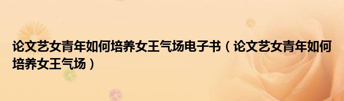 大家好,小安來為大家解答以上問題。論文藝女青年如何培養女王氣場電子書,論文藝女青年如何培養女王氣場很多人還不知道,現在讓我們一起來看看吧!