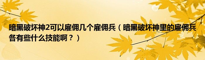 大家好,小安來為大家解答以上問題。暗黑破壞神2可以雇傭幾個雇傭兵,暗黑破壞神里的雇傭兵各有些什么技能啊?很多人還不知道,現(xiàn)在讓我們一起來看看吧!