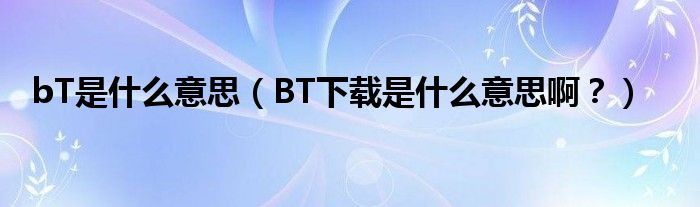 大家好,小安來為大家解答以上問題。bT是什么意思,BT下載是什么意思啊?很多人還不知道,現在讓我們一起來看看吧!