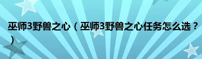 大家好,小動來為大家解答以上問題。巫師3野獸之心,巫師3野獸之心任務(wù)怎么選?很多人還不知道,現(xiàn)在讓我們一起來看看吧!