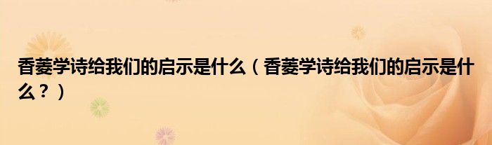 大家好,小安來為大家解答以上問題。香菱學詩給我們的啟示是什么,香菱學詩給我們的啟示是什么?很多人還不知道,現在讓我們一起來看看吧!