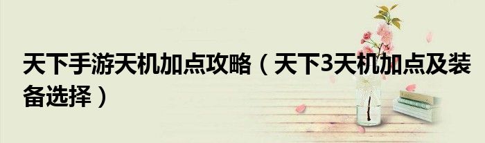 大家好,小安來為大家解答以上問題。天下手游天機(jī)加點(diǎn)攻略,天下3天機(jī)加點(diǎn)及裝備選擇很多人還不知道,現(xiàn)在讓我們一起來看看吧!