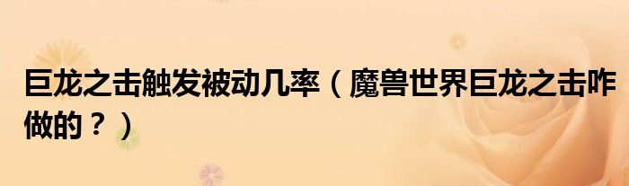 大家好,小安來為大家解答以上問題。巨龍之擊觸發被動幾率,魔獸世界巨龍之擊咋做的?很多人還不知道,現在讓我們一起來看看吧!