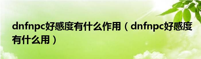 大家好,小安來為大家解答以上問題。dnfnpc好感度有什么作用,dnfnpc好感度有什么用很多人還不知道,現在讓我們一起來看看吧!