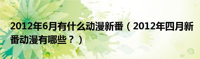 大家好,小安來為大家解答以上問題。2012年6月有什么動漫新番,2012年四月新番動漫有哪些?很多人還不知道,現在讓我們一起來看看吧!