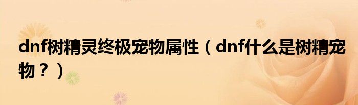 大家好,小安來為大家解答以上問題。dnf樹精靈終極寵物屬性,dnf什么是樹精寵物?很多人還不知道,現在讓我們一起來看看吧!