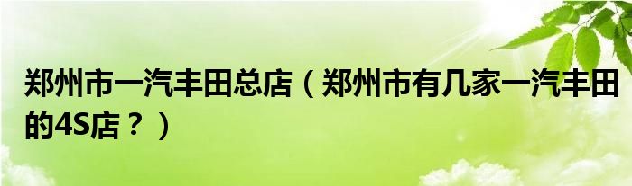 大家好,小安來為大家解答以上問題。鄭州市一汽豐田總店,鄭州市有幾家一汽豐田的4S店?很多人還不知道,現在讓我們一起來看看吧!