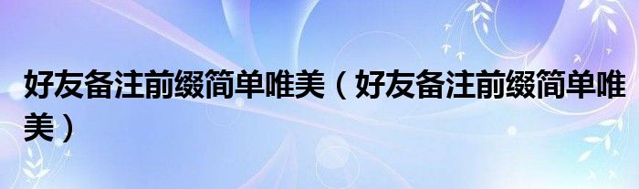大家好,小安來為大家解答以上問題。好友備注前綴簡單唯美,好友備注前綴簡單唯美很多人還不知道,現(xiàn)在讓我們一起來看看吧!