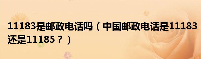 大家好,小安來為大家解答以上問題。11183是郵政電話嗎,中國郵政電話是11183還是11185?很多人還不知道,現在讓我們一起來看看吧!