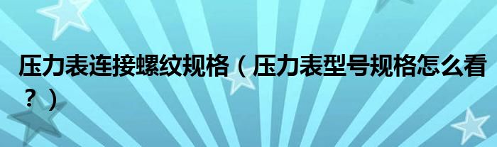 大家好,小動來為大家解答以上問題。壓力表連接螺紋規格,壓力表型號規格怎么看?很多人還不知道,現在讓我們一起來看看吧!