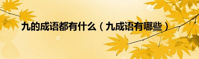大家好,小動來為大家解答以上問題。九的成語都有什么,九成語有哪些很多人還不知道,現在讓我們一起來看看吧!