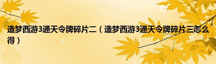 1、 夢幻西游記3田童令牌碎片3是牛王默三世掉落的,天道秩序需要田童令牌碎片123,碎片1是楊戩的墮落山河圖分解的,碎片2是輪王三世掉落的。