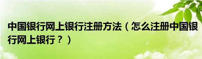 大家好,小安來為大家解答以上問題。中國銀行網上銀行注冊方法,怎么注冊中國銀行網上銀行?很多人還不知道,現在讓我們一起來看看吧!
