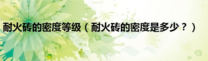 大家好,小安來為大家解答以上問題。耐火磚的密度等級,耐火磚的密度是多少?很多人還不知道,現在讓我們一起來看看吧!