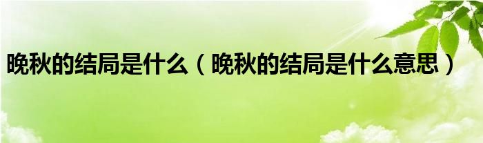 大家好,小安來為大家解答以上問題。晚秋的結局是什么,晚秋的結局是什么意思很多人還不知道,現在讓我們一起來看看吧!