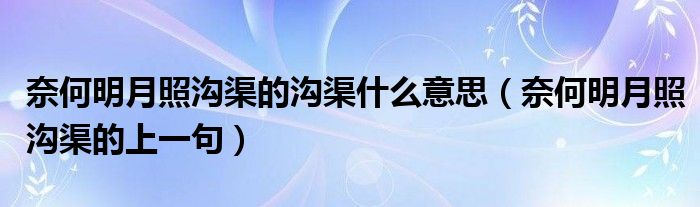 大家好,小安來為大家解答以上問題。奈何明月照溝渠的溝渠什么意思,奈何明月照溝渠的上一句很多人還不知道,現在讓我們一起來看看吧!