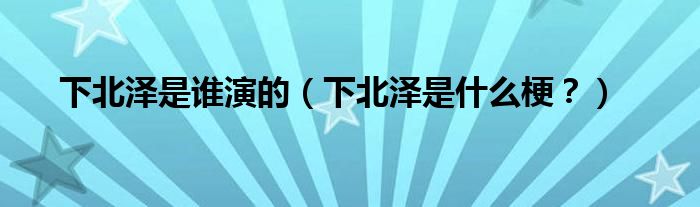 大家好,小安來為大家解答以上問題。下北澤是誰演的,下北澤是什么梗?很多人還不知道,現(xiàn)在讓我們一起來看看吧!