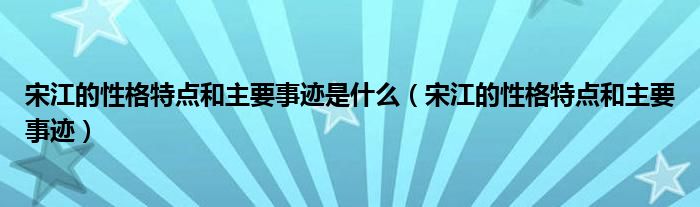 大家好,小安來為大家解答以上問題。宋江的性格特點和主要事跡是什么,宋江的性格特點和主要事跡很多人還不知道,現在讓我們一起來看看吧!