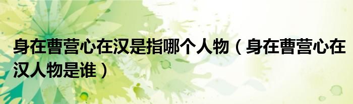 大家好,小安來為大家解答以上問題。身在曹營心在漢是指哪個人物,身在曹營心在漢人物是誰很多人還不知道,現在讓我們一起來看看吧!