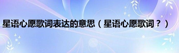 大家好,小安來為大家解答以上問題。星語心愿歌詞表達的意思,星語心愿歌詞?很多人還不知道,現在讓我們一起來看看吧!