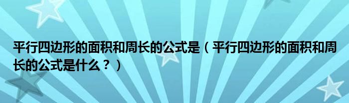 大家好,小安來為大家解答以上問題。平行四邊形的面積和周長的公式是,平行四邊形的面積和周長的公式是什么?很多人還不知道,現在讓我們一起來看看吧!