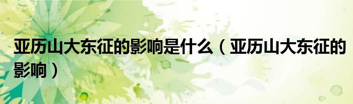 大家好,小安來為大家解答以上問題。亞歷山大東征的影響是什么,亞歷山大東征的影響很多人還不知道,現(xiàn)在讓我們一起來看看吧!