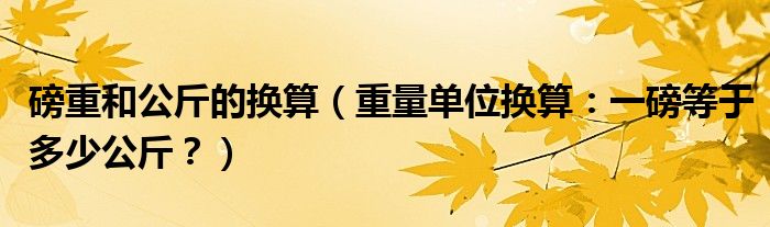 大家好,小安來為大家解答以上問題。磅重和公斤的換算,重量單位換算:一磅等于多少公斤?很多人還不知道,現在讓我們一起來看看吧!