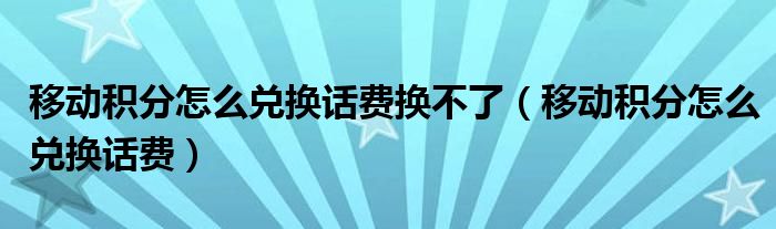 大家好,小安來為大家解答以上問題。移動積分怎么兌換話費換不了,移動積分怎么兌換話費很多人還不知道,現在讓我們一起來看看吧!