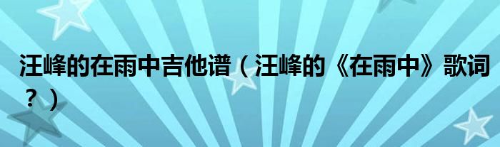 大家好,小安來為大家解答以上問題。汪峰的在雨中吉他譜,汪峰的《在雨中》歌詞?很多人還不知道,現在讓我們一起來看看吧!