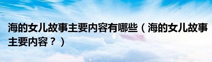 大家好,小安來為大家解答以上問題。海的女兒故事主要內(nèi)容有哪些,海的女兒故事主要內(nèi)容?很多人還不知道,現(xiàn)在讓我們一起來看看吧!