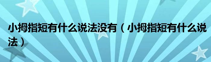 大家好,小安來(lái)為大家解答以上問(wèn)題。小拇指短有什么說(shuō)法沒(méi)有,小拇指短有什么說(shuō)法很多人還不知道,現(xiàn)在讓我們一起來(lái)看看吧!