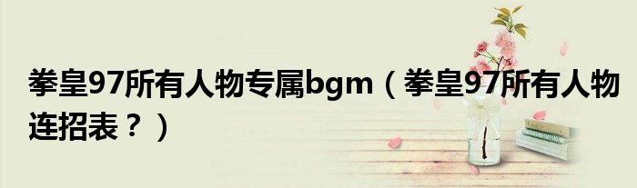 大家好,小安來為大家解答以上問題。拳皇97所有人物專屬bgm,拳皇97所有人物連招表?很多人還不知道,現在讓我們一起來看看吧!