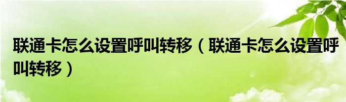 大家好,小安來為大家解答以上問題。聯通卡怎么設置呼叫轉移,聯通卡怎么設置呼叫轉移很多人還不知道,現在讓我們一起來看看吧!