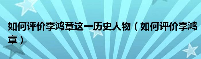 如何評(píng)價(jià)李鴻章這一歷史人物(如何評(píng)價(jià)李鴻章)