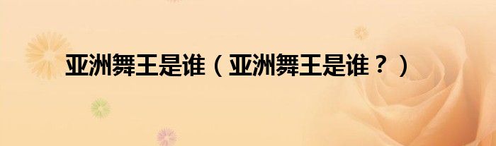 大家好,小安來為大家解答以上問題。亞洲舞王是誰,亞洲舞王是誰?很多人還不知道,現在讓我們一起來看看吧!