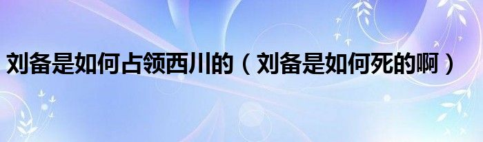 大家好,小安來為大家解答以上問題。劉備是如何占領西川的,劉備是如何死的啊很多人還不知道,現在讓我們一起來看看吧!