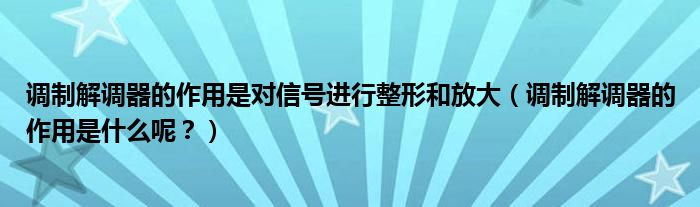 大家好,小安來(lái)為大家解答以上問(wèn)題。調(diào)制解調(diào)器的作用是對(duì)信號(hào)進(jìn)行整形和放大,調(diào)制解調(diào)器的作用是什么呢?很多人還不知道,現(xiàn)在讓我們一起來(lái)看看吧!