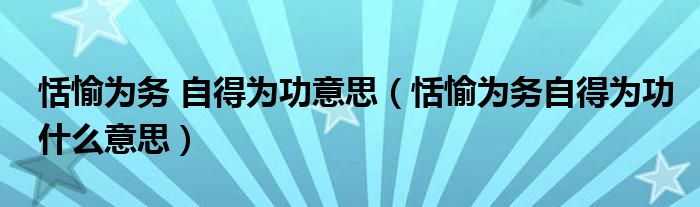 大家好,小安來為大家解答以上問題。恬愉為務 自得為功意思,恬愉為務自得為功什么意思很多人還不知道,現在讓我們一起來看看吧!