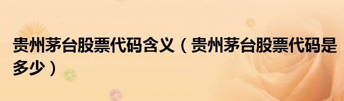 大家好,小安來為大家解答以上問題。貴州茅臺股票代碼含義,貴州茅臺股票代碼是多少很多人還不知道,現在讓我們一起來看看吧!