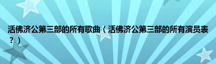 大家好,小安來為大家解答以上問題。活佛濟公第三部的所有歌曲,活佛濟公第三部的所有演員表?很多人還不知道,現在讓我們一起來看看吧!