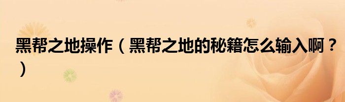大家好,小安來為大家解答以上問題。黑幫之地操作,黑幫之地的秘籍怎么輸入啊?很多人還不知道,現(xiàn)在讓我們一起來看看吧!