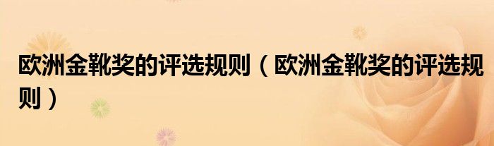 大家好,小安來為大家解答以上問題。歐洲金靴獎的評選規則,歐洲金靴獎的評選規則很多人還不知道,現在讓我們一起來看看吧!