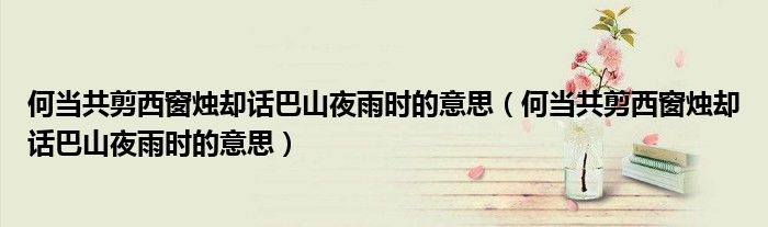 大家好,小安來為大家解答以上問題。何當共剪西窗燭卻話巴山夜雨時的意思,何當共剪西窗燭卻話巴山夜雨時的意思很多人還不知道,現在讓我們一起來看看吧!