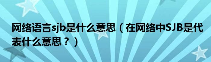 大家好,小安來為大家解答以上問題。網(wǎng)絡(luò)語言sjb是什么意思,在網(wǎng)絡(luò)中SJB是代表什么意思?很多人還不知道,現(xiàn)在讓我們一起來看看吧!