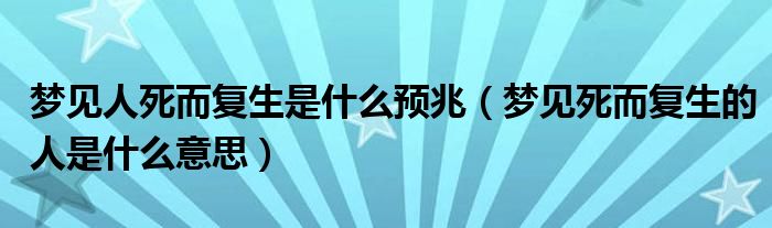 大家好,小安來為大家解答以上問題。夢見人死而復(fù)生是什么預(yù)兆,夢見死而復(fù)生的人是什么意思很多人還不知道,現(xiàn)在讓我們一起來看看吧!
