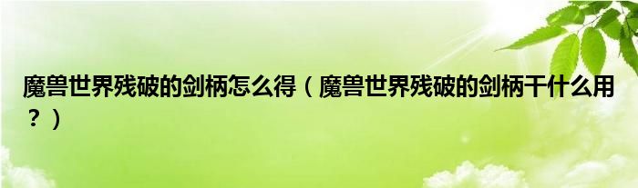 大家好,小安來為大家解答以上問題。魔獸世界殘破的劍柄怎么得,魔獸世界殘破的劍柄干什么用?很多人還不知道,現(xiàn)在讓我們一起來看看吧!