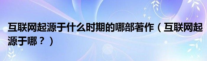 大家好,小安來為大家解答以上問題?;ヂ摼W起源于什么時期的哪部著作,互聯網起源于哪?很多人還不知道,現在讓我們一起來看看吧!