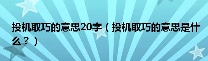 大家好,小安來為大家解答以上問題。投機取巧的意思20字,投機取巧的意思是什么?很多人還不知道,現在讓我們一起來看看吧!