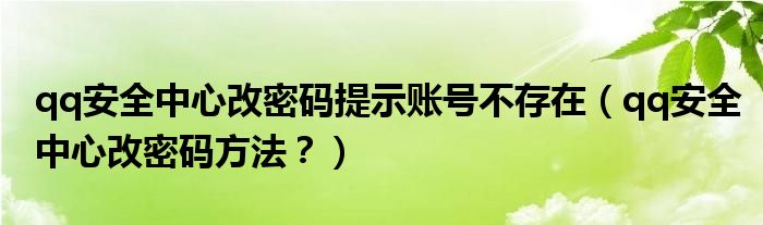 大家好,小安來為大家解答以上問題。qq安全中心改密碼提示賬號不存在,qq安全中心改密碼方法?很多人還不知道,現在讓我們一起來看看吧!